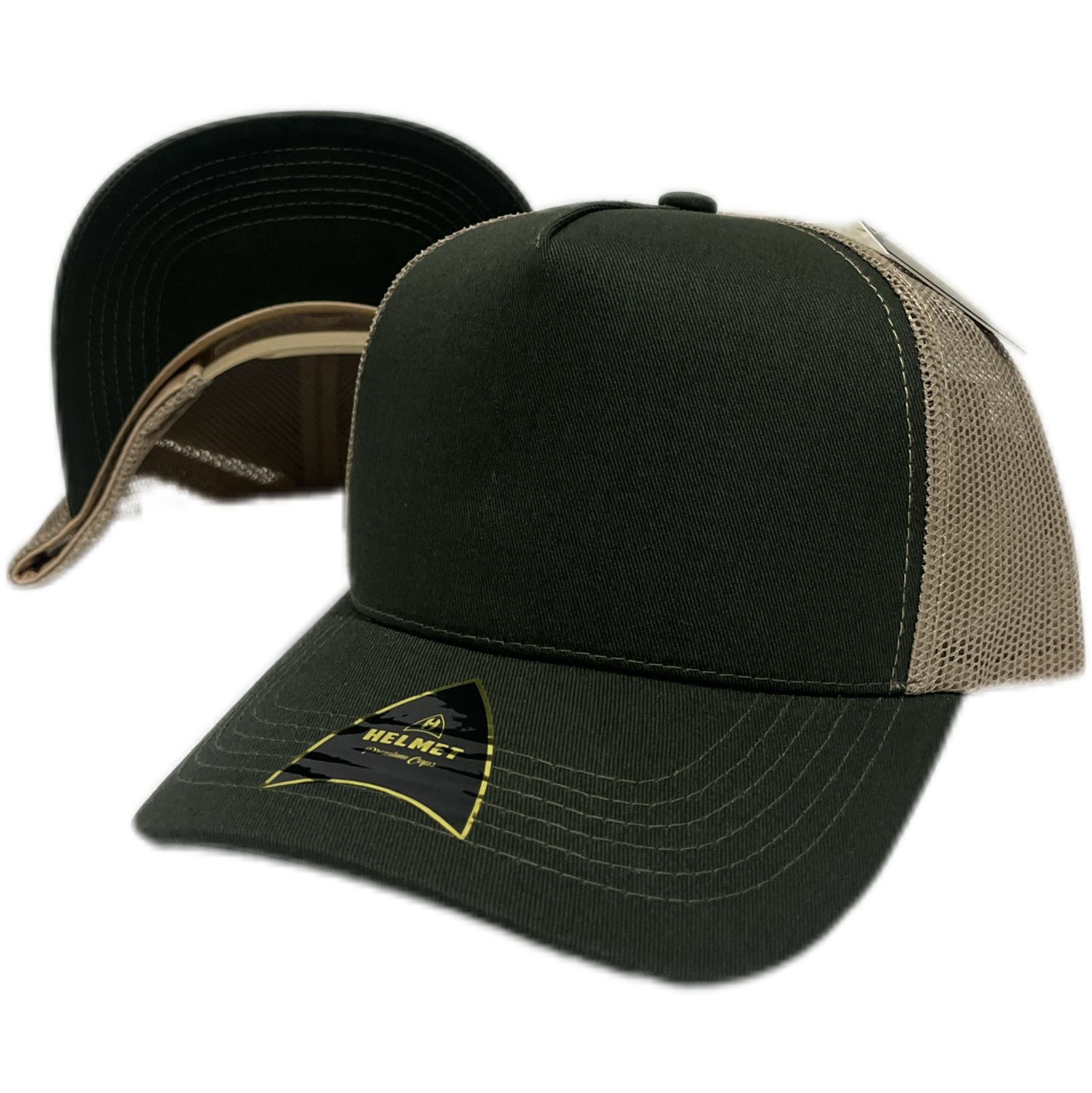 Helmet 5 Panel Trucker Verde Oscuro con Malla Khaki