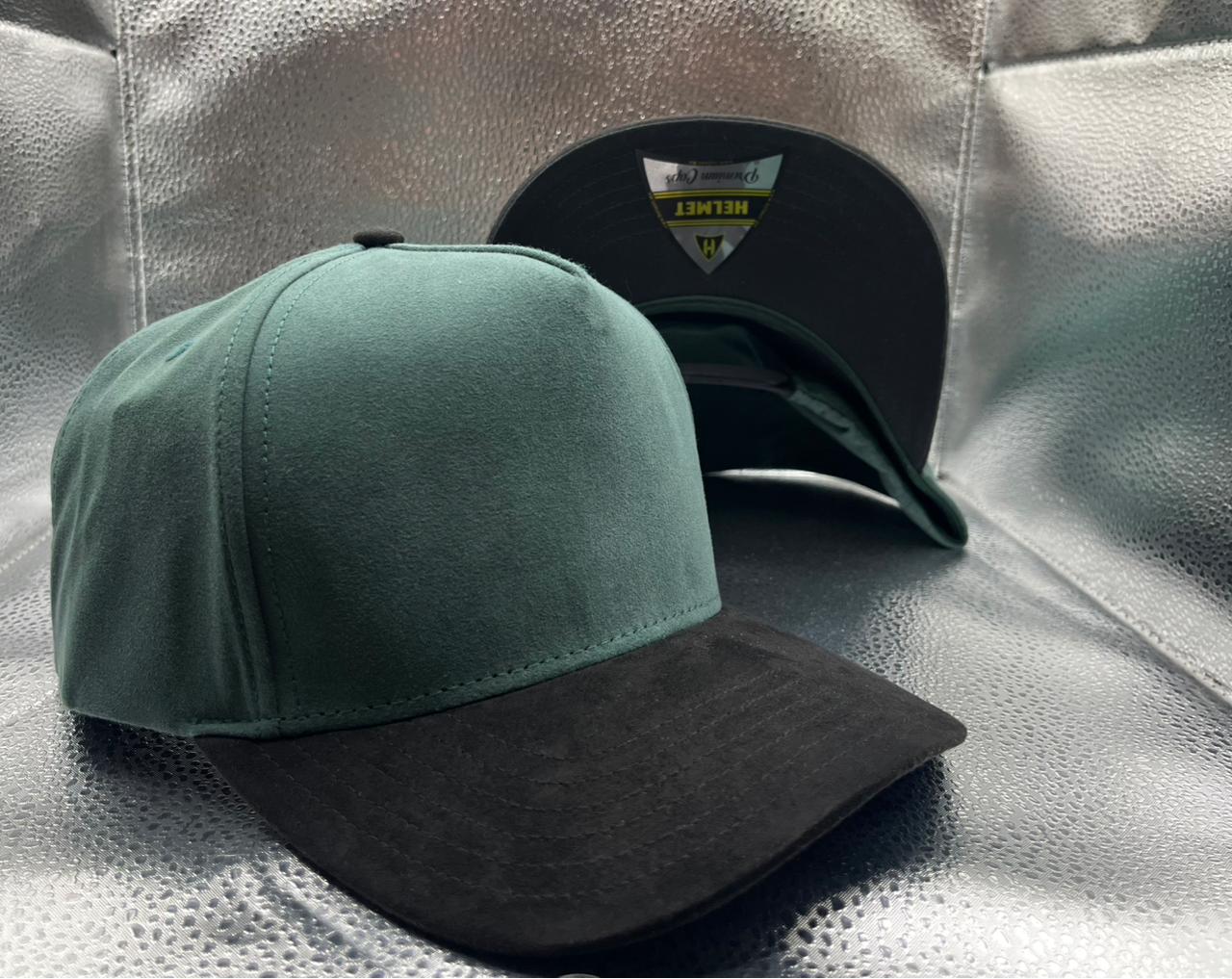 Helmet Gamuza 5 Panel Suede Curva Verde Oscuro con negro
